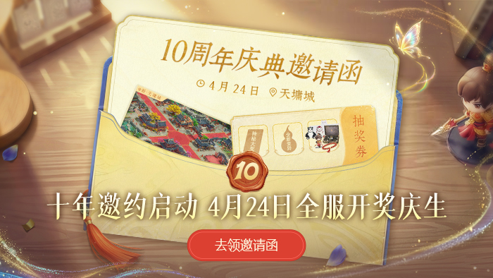 全新天墉城首爆,即日开领10周年专属邀请函和抽奖券,静候万千道友重聚!
