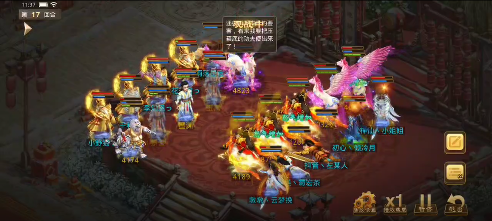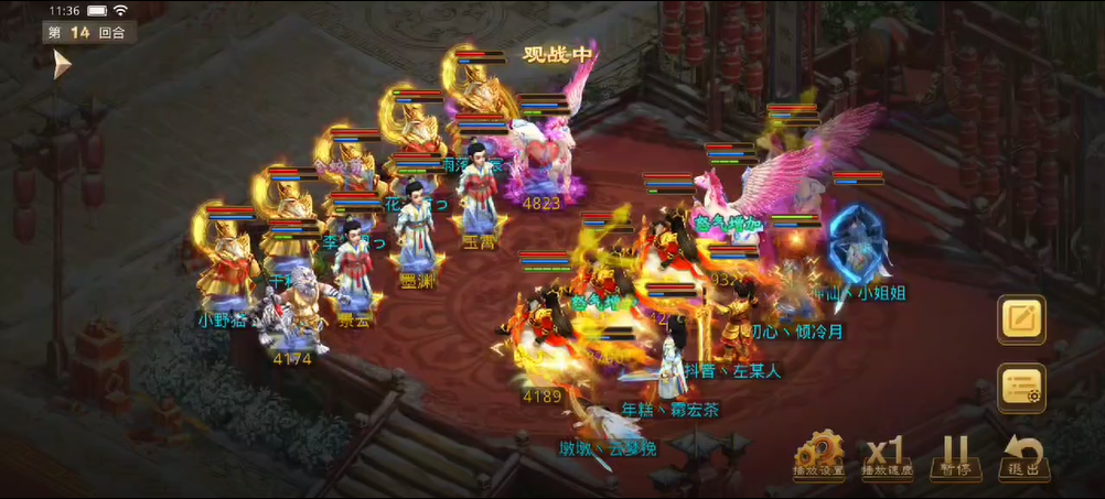 双方均用闻风丧胆和束手就擒限制彼此的控手和打手,几回合内都没怎么出手障碍和输出,直到14回合出现转机,对战方将观战方2个打手全部束手就擒,控水也冰上观战方3个人物和3只宠物,对战方力木出手打掉了观战方的第1只宠物。